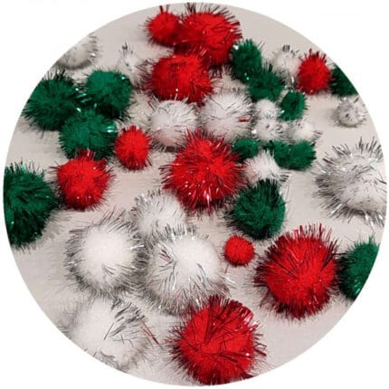 Pompony metalizowane 40 szt mix rozm biały, czerwony, zielony POM44*04677*