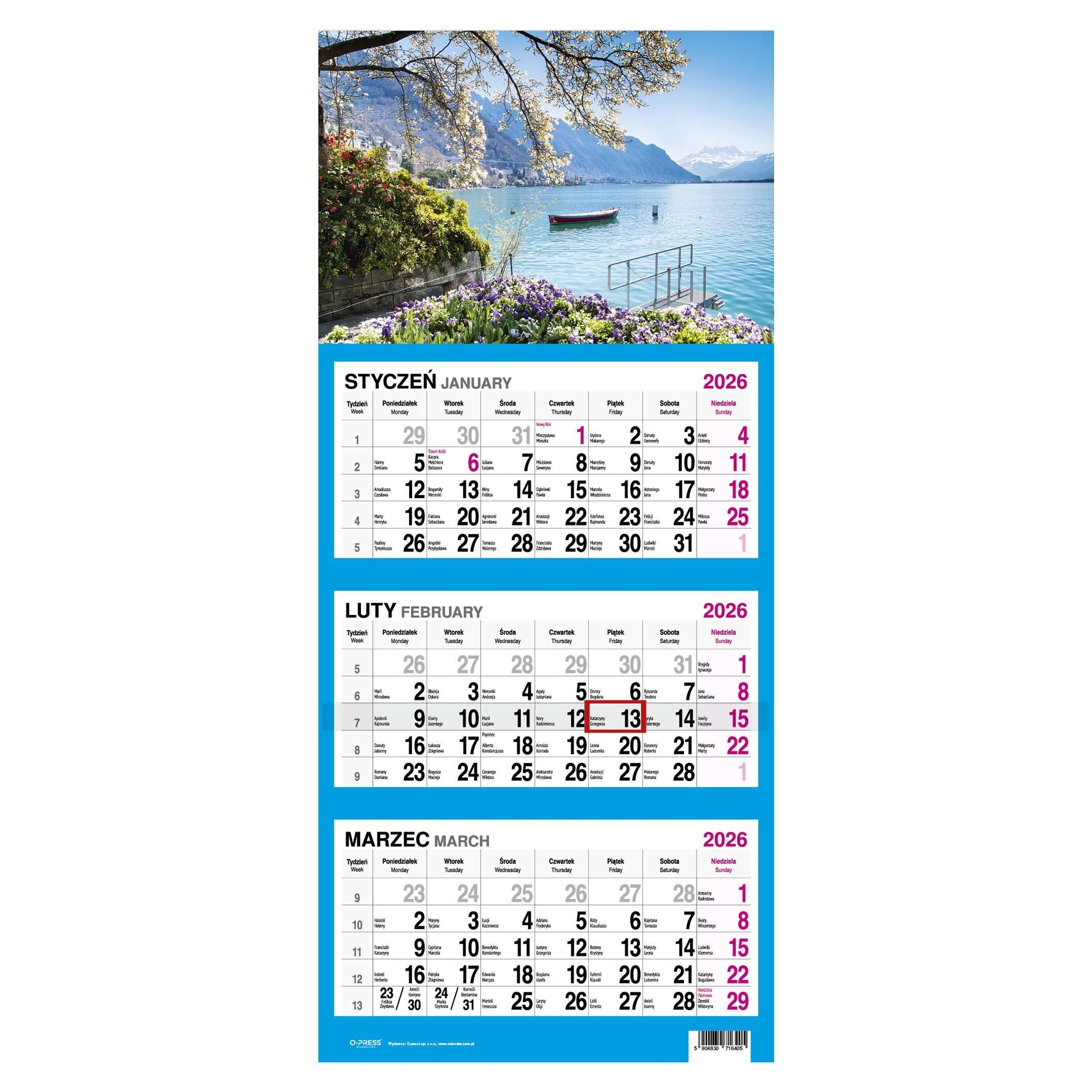 Kalandarz trójdzielny Widok 2026 format (308x710x4 mm) - ilość stron 12 *6405*