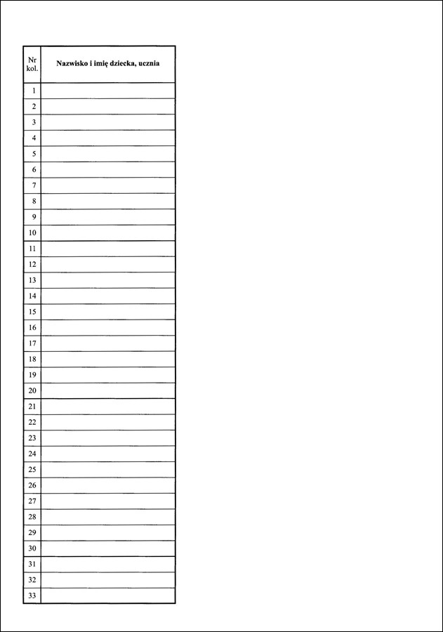 3. Nazwiska dzieci, uczniów należy wpisać w porządku alfabetycznym