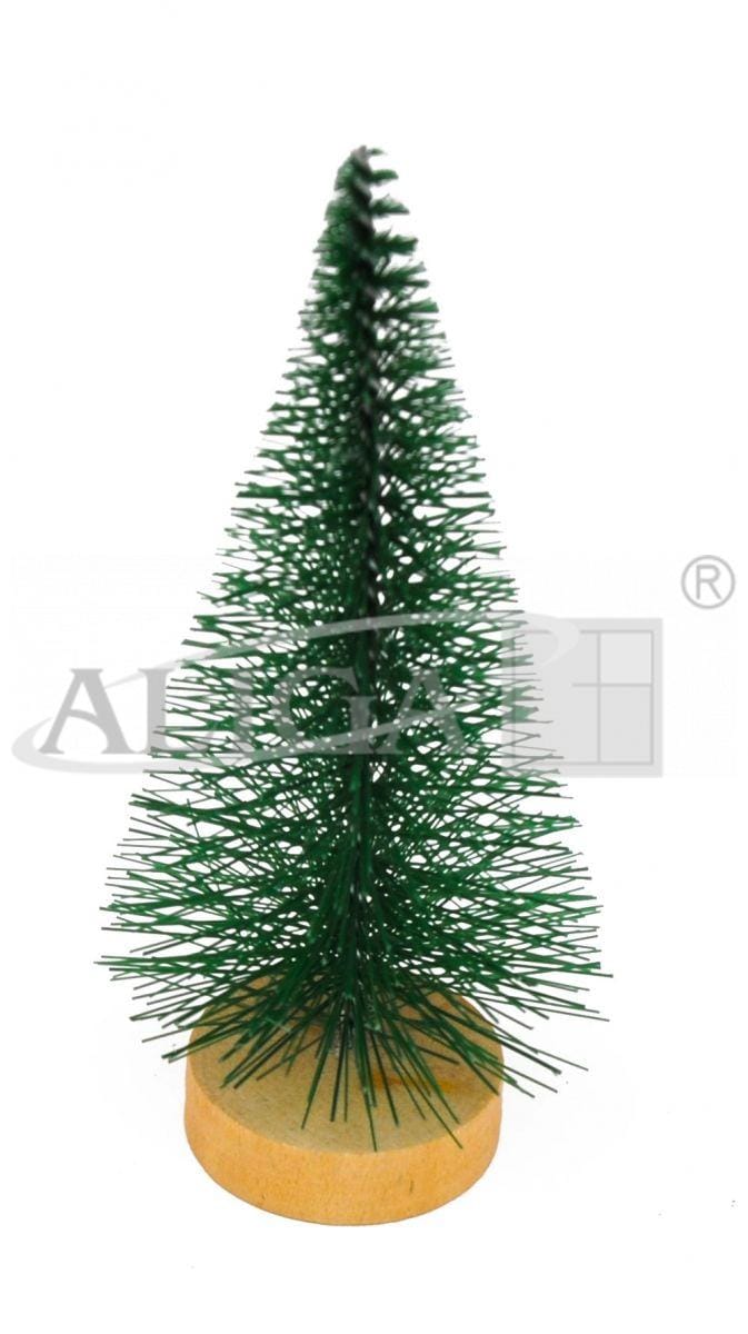 Choinka zielona z tworzywa sztucznego 15cm, na okrągłej drewnianej podstawce.
