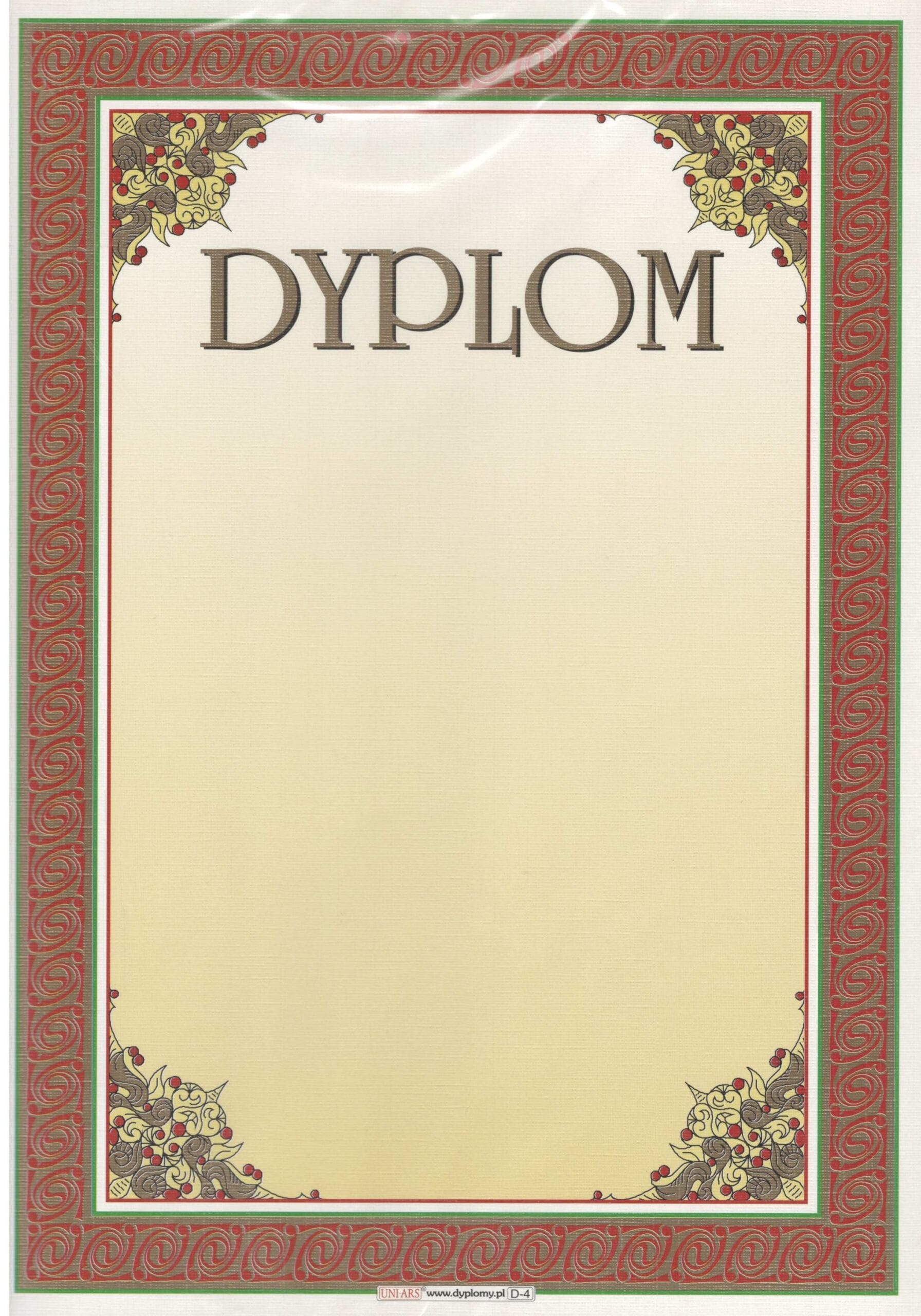 DYPLOMY WZÓR CZERWONA RAMKA/ECRU TŁO A4 10SZT*4012*