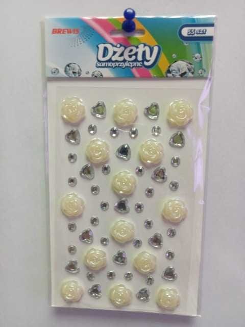 Dżety samoprzylepne kolor biały/srebrny serca i różyczki DSK6 55 szt*4196*
