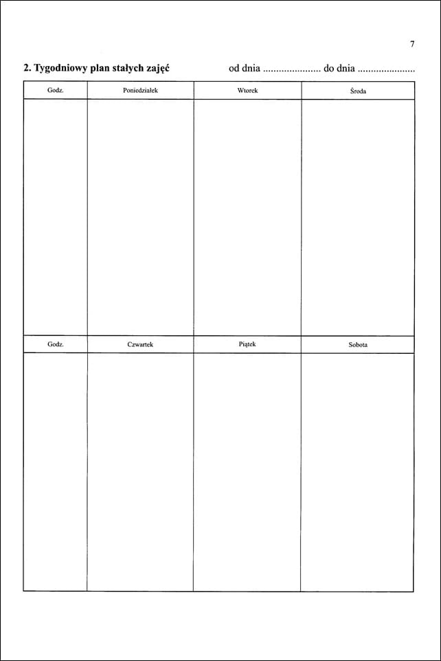 2. Tygodniowy plan stałych zajęć