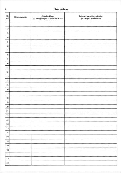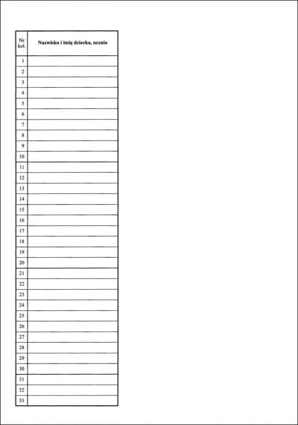 3. Nazwiska dzieci, uczniów należy wpisać w porządku alfabetycznym