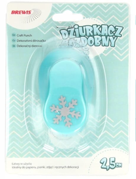 Prosty w obsłudze dziurkacz, który doskonale sprawdzi się w dziurkowaniu papieru lub pianki. Nieoceniona pomoc przy tworzeniu kartek okolicznościowych, ozdobnych kopert oraz różnego rodzaju dekoracji.Kształt-śnieżynka.