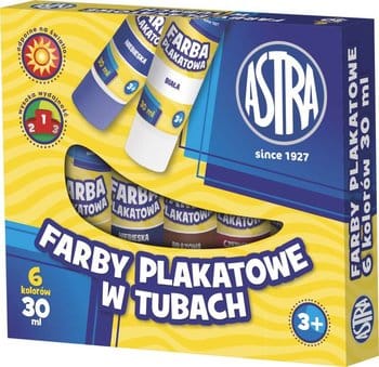 Farby plakatowe Astra 6 kolorów tuba 30 ml.