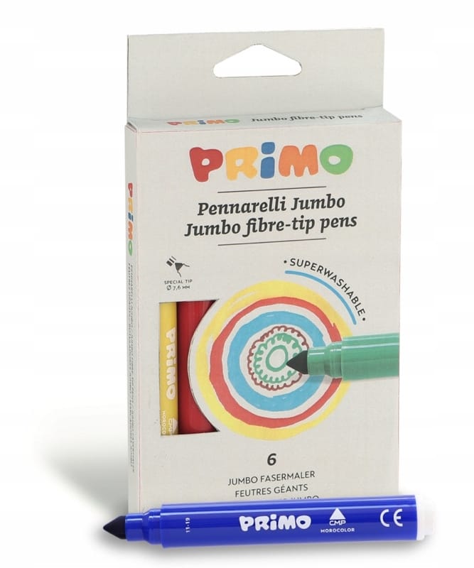 Flamastry PRIMO Jumbo 6 kol. O 7,6 mm kartonowe opakowanie z zawieszką 6032JUMBO6 *7094*