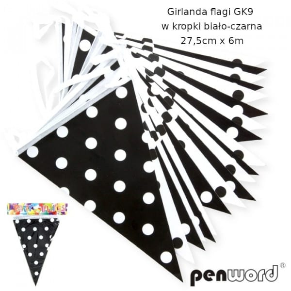 GIRLANDA FLAGI GK8 W KROPKI CZARNA 27,5cmx6m *1909*