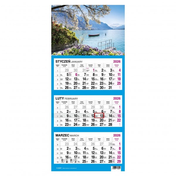 Kalandarz trójdzielny Widok 2026 format (308x710x4 mm) – ilość stron 12 *6405*