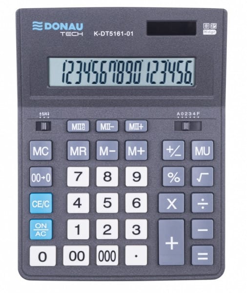 Kalkulator biurowy DONAU TECH OFFICE, CI-CDB1601BK, 16-cyfr. wyświetlacz, wym. 201x155x35mm, czarny
