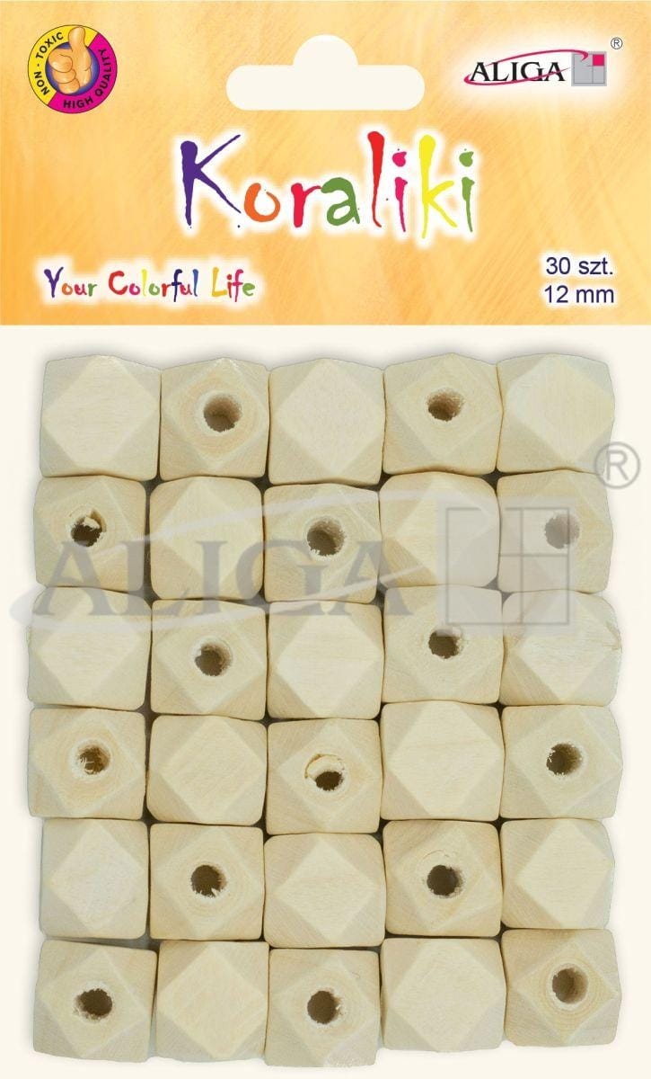 Koraliki drewniane, geometryczne 12mm, otwór 4mm 30szt PJ-0768