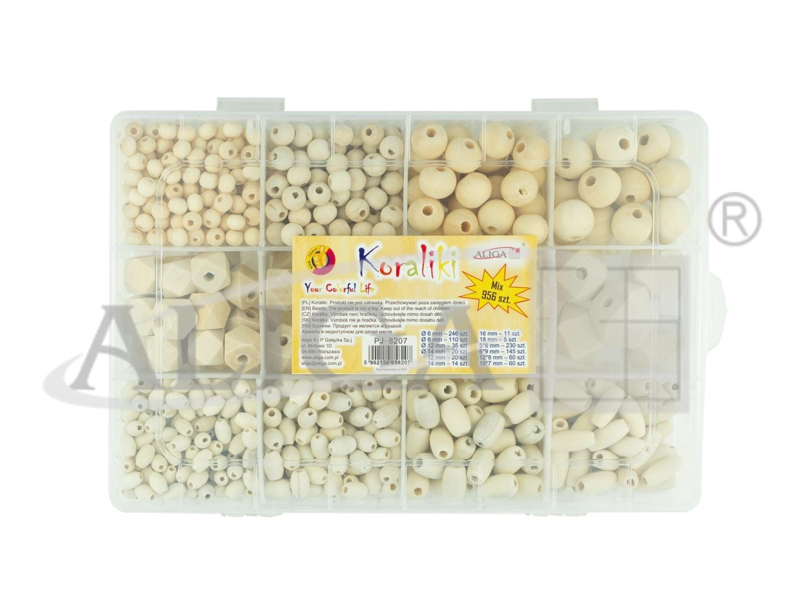 Zestaw koralików drewnianych PJ-8207 w wersji dopracowanej, mix, op. 956 szt PROM