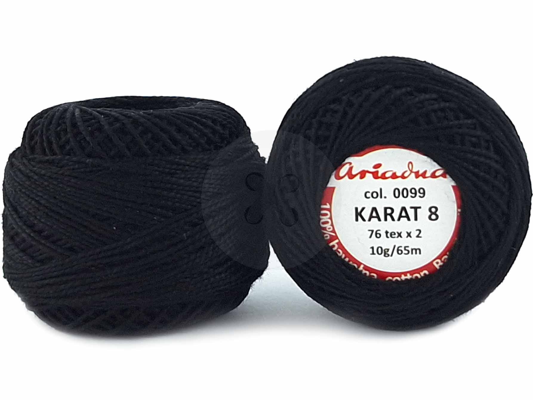 Karat 8 to kordonek w malutkich motkach – 10g/65m. Kolor czarny. Świetnie nadaje się do szydełkowania i haftowania.