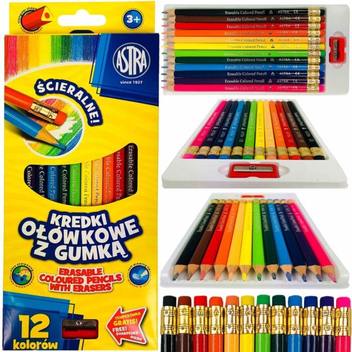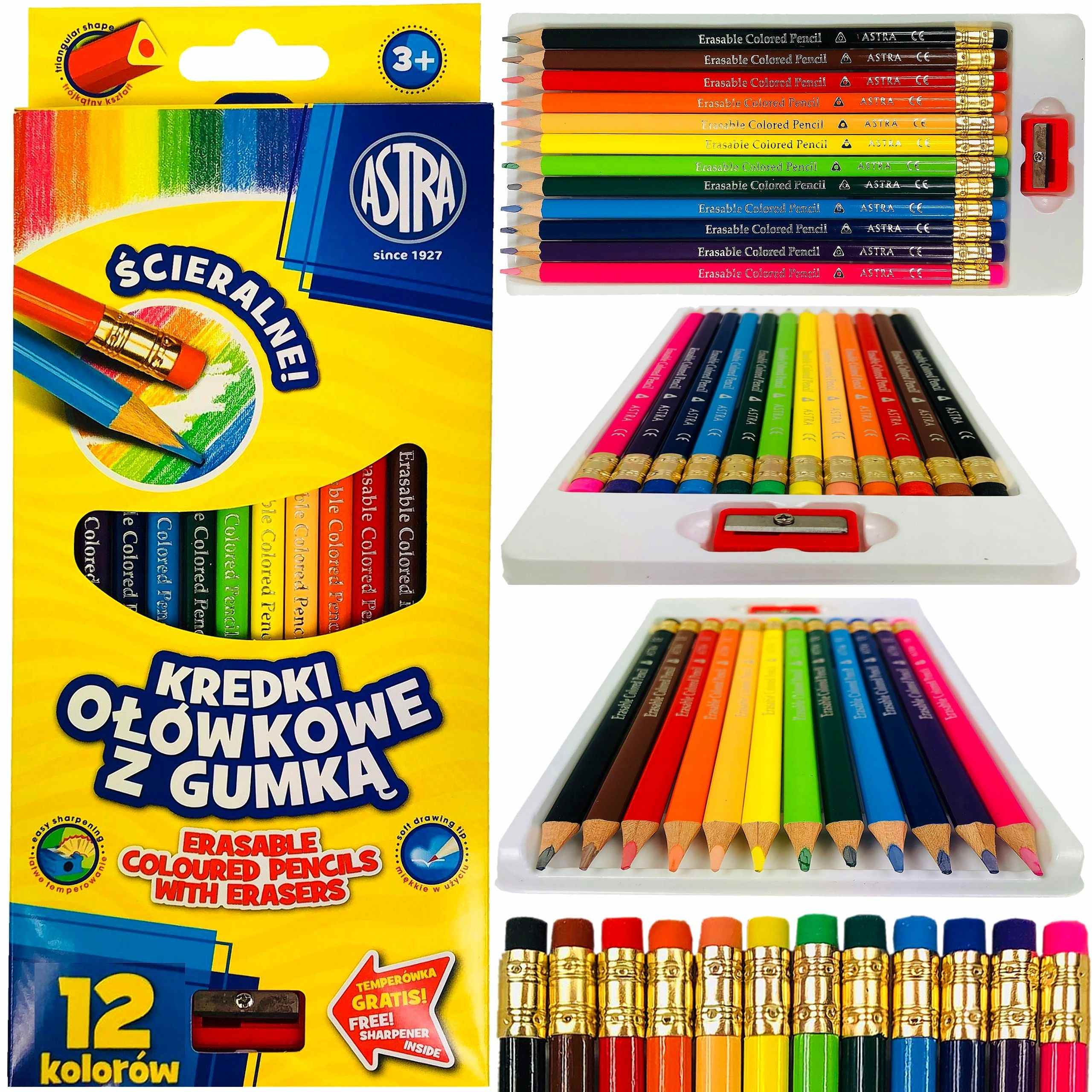 Kredki ołówkowe z gumką 12 kolorów ASTRA