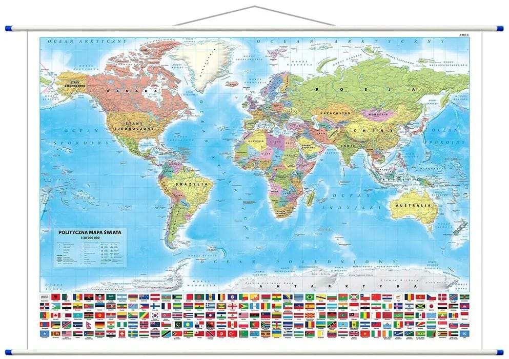 Mapa ścienna Świat polity. 140×100 mm 1:30 mln na rurce PCV*8797*
