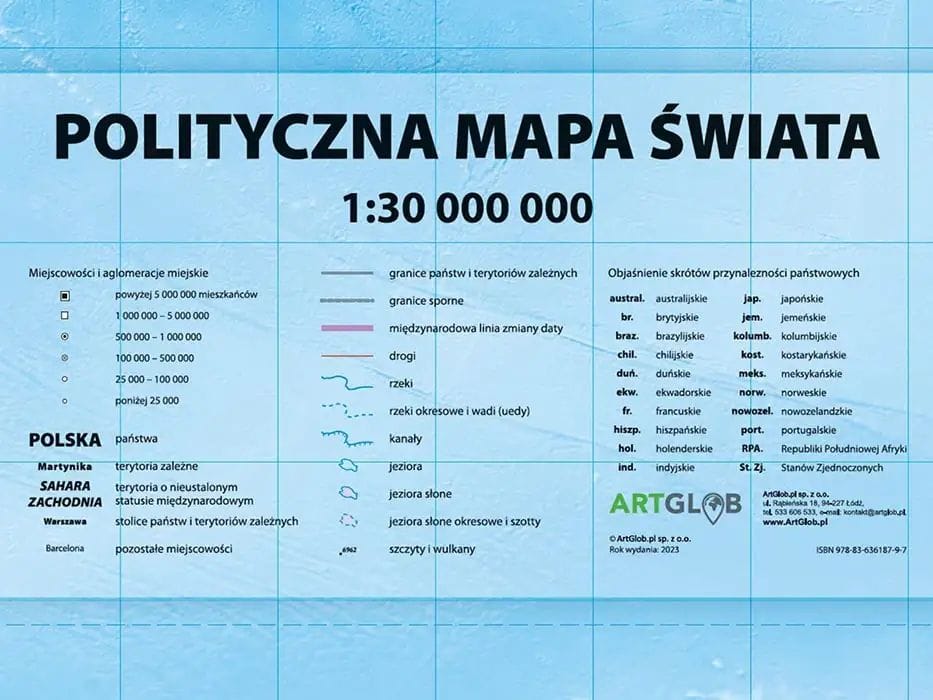 Jednostronna mapa polityczna świata w skali 1:30 000 000 od wydawnictwa ArtGlob jest jedną z najlepiej opracowanych produktów tego rodzaju.