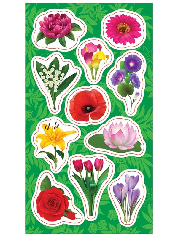 Zestaw naklejek do ozdoby zeszytów, albumów, listów, pocztówek … 11 kwiatków