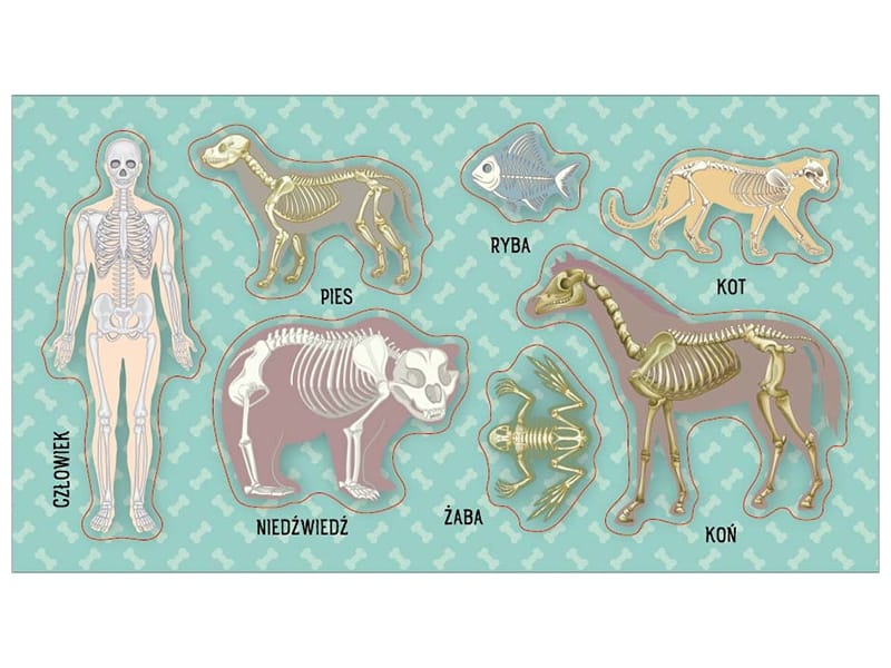 Zestaw naklejek do ozdoby zeszytów, albumów, listów, pocztówek … 7 naklejek z układami kostnymi człowieka i zwierząt z opisami. POLECANE DO SZKÓŁ