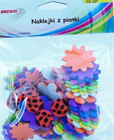 Naklejki z pianki 60szt kwiatki, biedronki. Mix kolorów