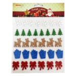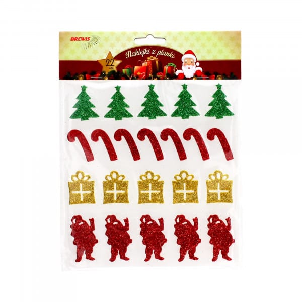 Naklejki w świątecznym wydaniu to dekoracje, które sprawdzą się idealnie jako ozdoby na bombki, kartki okolicznościowe czy na prezenty pod choinkę. Wykonane z pianki, ozdobione brokatem, w pięknych kolorach z mnóstwem świątecznych elementów. Są tu choinki, prezenty, cukrowe laski i Mikołaje.
