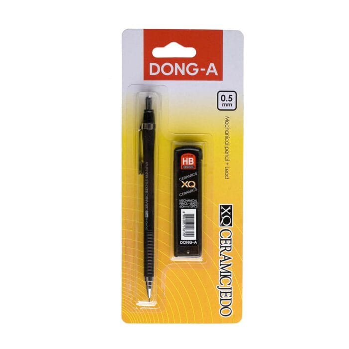 Zestaw składający się z ołówka automatycznego 0,5 mm i etui z zapasowymi grafitami HB 0,5 mm. W przycisku znajduje się gumka i zapasowy pojemnik na grafity. Grafit wykonany jest z połączenia syntetycznej żywicy, grafitu i węgla. Do rysowania na papierze i kalce kreślarskiej. Długość wkładu grafitowego 60 mm, w etui 12 wkładów.