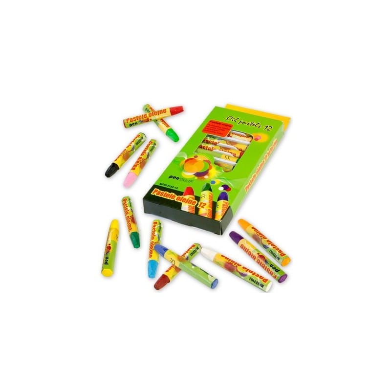 Zestaw składający się z 12 kolorów pasteli olejnych: biały, żółty, brzoskwiniowy, pomarańczowy, różowy, czerwony, błękitnym, niebieski, zielony, brązowy, szary i czarny. Pastele olejne to fantastyczna przygoda z malowaniem, ponieważ po narysowaniu kreski można ją delikatnie rozetrzeć za pomocą palca lub chusteczki.