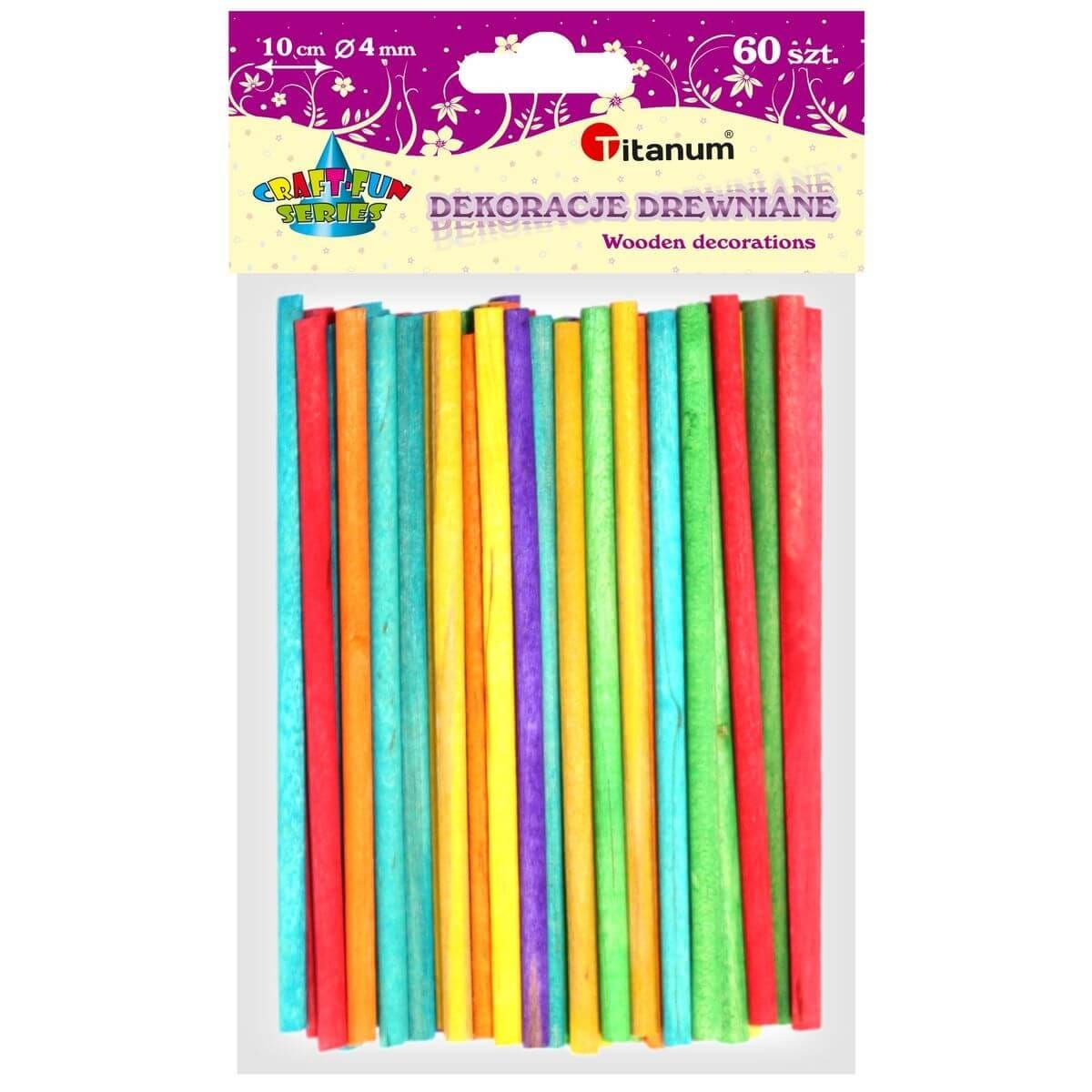 Drewniane patyczki do dekorowania, okrągłe, wykonane z naturalnego drewna, malowane, można je dowolnie zdobić: malować, oklejać, lakierować, wymiary: 10 cm x ? 4 mm – mix kolorów – 60 szt.