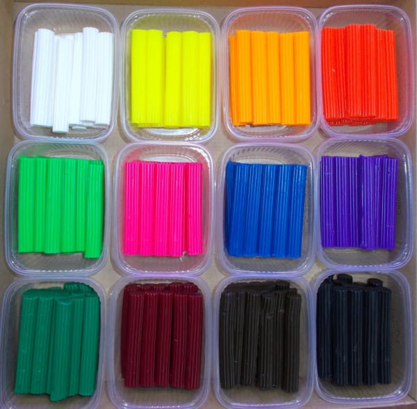 Plastelina wysokiej jakości masa plastyczna, wykonana na bazie wosku. Jest miękka i elastyczna, nie klei się do rąk. Daje możliwość tworzenia dowolnych kolorów, mieszając podstawową ich bazę. Jej barwy są żywe i nasycone. Nie wysycha na powietrzu, przez co może być wykorzystywana wielokrotnie. Nie ulega przeterminowaniu. Opakowanie zawiera 12 kolorów po 15 szt