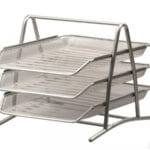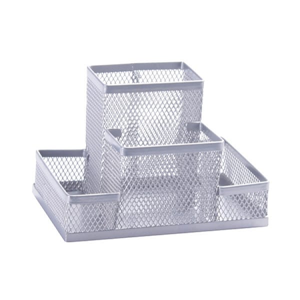 Przybornik wykonany z malowanego metalu, posiada 3 przegródki na karteczki, długopisy, ołówki, spinacze, pinezki itp.