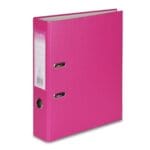 Format A4, z mechanizmem dźwigniowym, wykonane z twardej tektury pokrytej folią polipropylenową, wzmocniony otwór na palec, dolna krawędź wzmocniona metalowym okuciem, dwustronna etykieta wymienna.