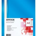 Wykonany z najwyższej jakości folii twardej PCV z praktycznymi wąsami i listewką dociskową. Wzdłuż krawędzi umieszczony papierowy pasek do opIsu zawartości. Przednia okładka przezroczysta twarda, tylna kolorowa.