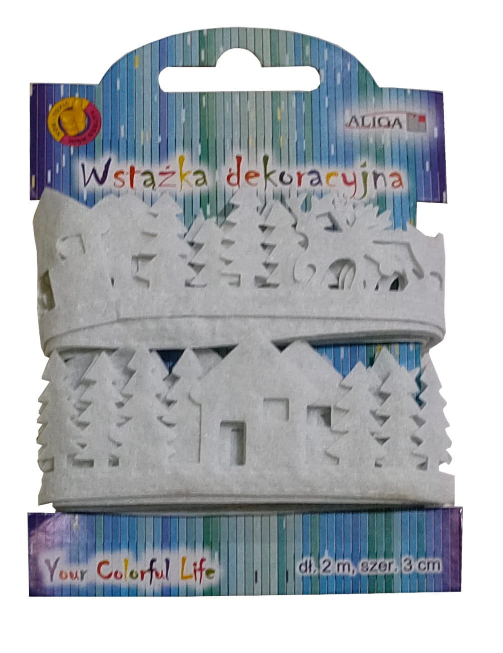 Taśma filcowa z motywem świątecznym białe choinki 3cm x 2m. *6563*