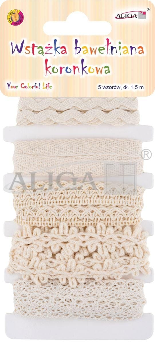 Wstążka bawełniana koronkowa, dł. 1,5m, 5 wzorów WK-0925 *0925*