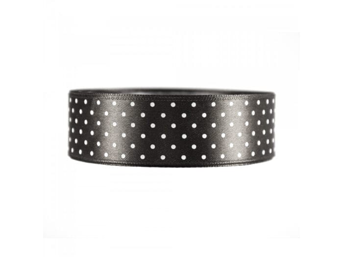 Wstążka satynowa w białe kropki 25mm/22m WSK25-39 czarny *2260*