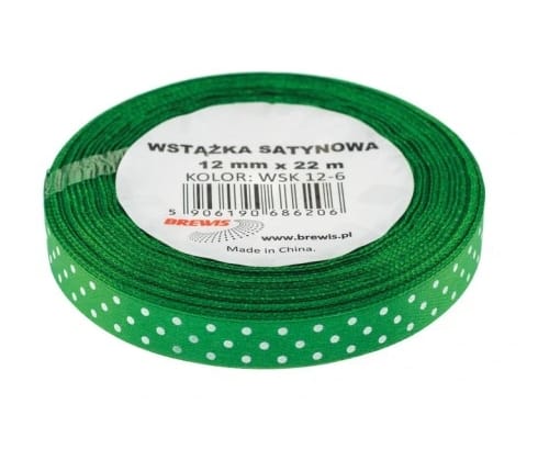 Wstążka satynowa w białe kropki 6mm/22m zielony WSK6-19 *1973*