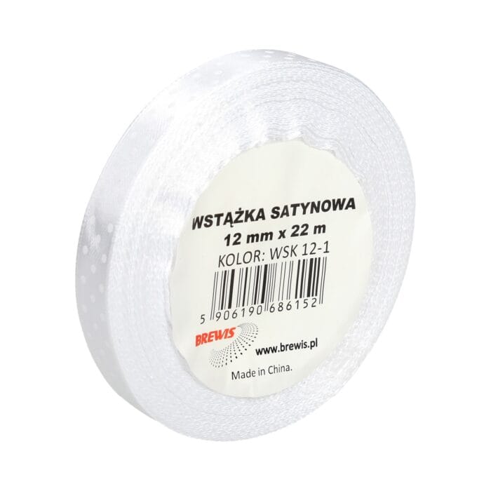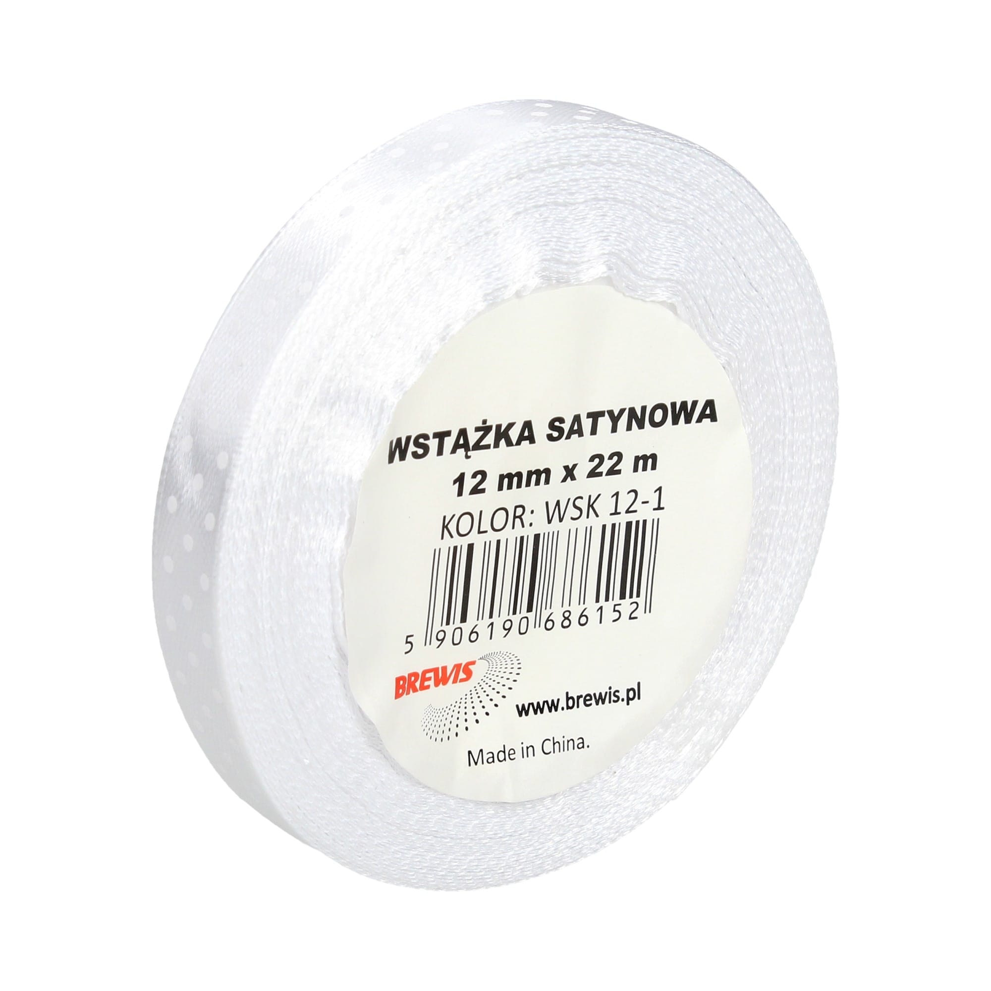 WYPRZEDAŻ WSTĄŻKA SATYNOWA BIAŁA WSK12-1 KROPKI 12MMX22M*6152*