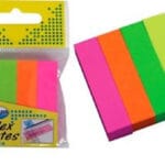 Klasyczne zakładki indeksujące w 4 kolorach pastelowych: niebieskim, zielonym, żółtym, różowym i pomarańczowym- po 25 kartek. Umożliwiają łatwe zaznaczanie i szybkie odnajdywanie ważnych informacji. Można je wielokrotnie odrywać i przyklejać w innych miejscach.