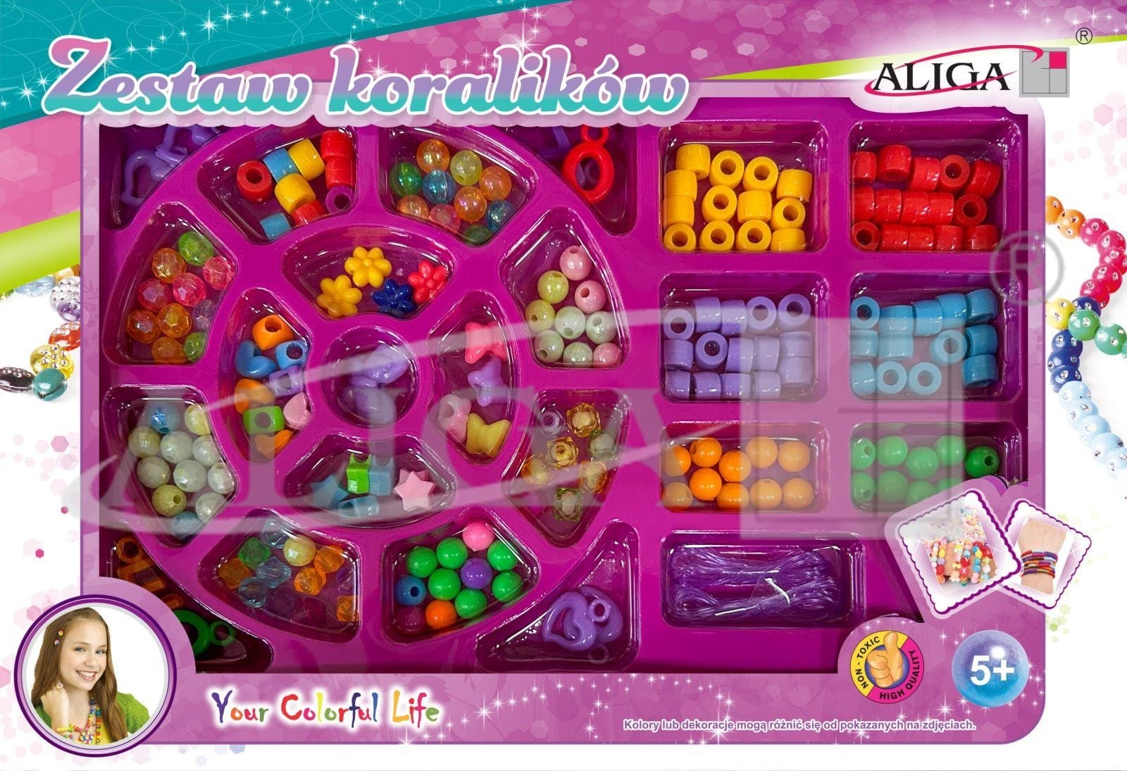Zestaw koralików ok. 170szt, żyłka el.120cm, pud. 26x18x2,3cm PJ-1985*1985*