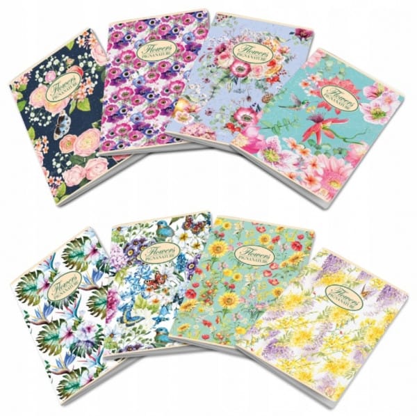 Natura Flowers to kolekcja ekologicznych artykułów powstałych z troską o nasze naturalne środowisko. Papier użyty do produkcji pochodzi w całości z recyklingu. Jednocześnie produkty z tej serii odznaczają się jakością oraz ciekawym wzornictwem. Okładki na których dominują kwiatowe kompozycje są przesłaniem dla naszego pokolenia i wyrażają potrzebę dbania o przyrodę oraz respektowanie jej praw.