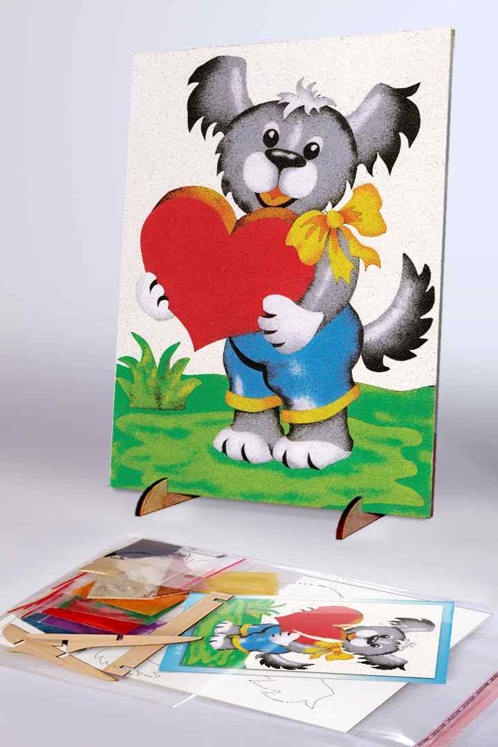 OBRAZEK PIASKOWY PIESEK Z SERCEM