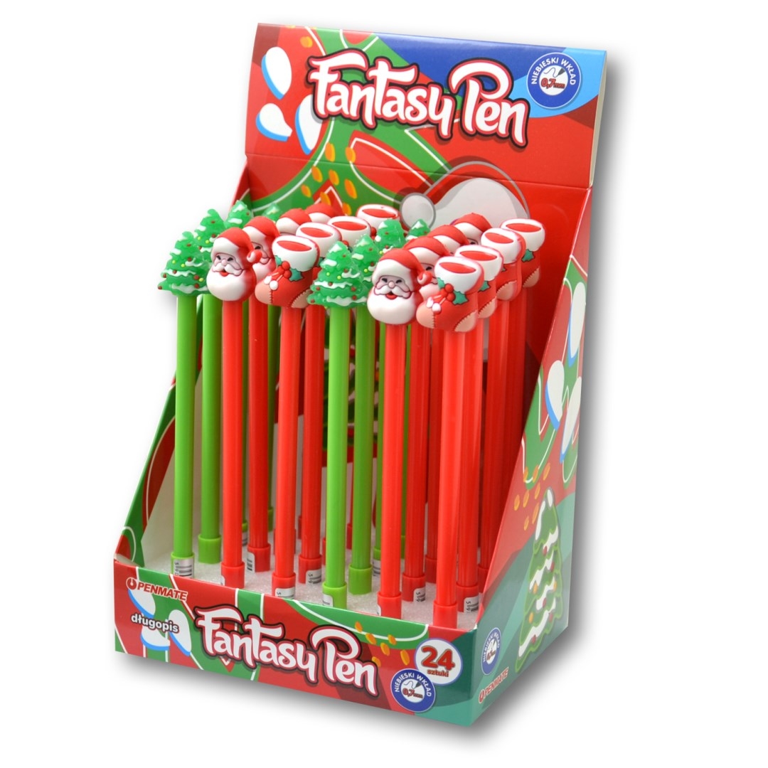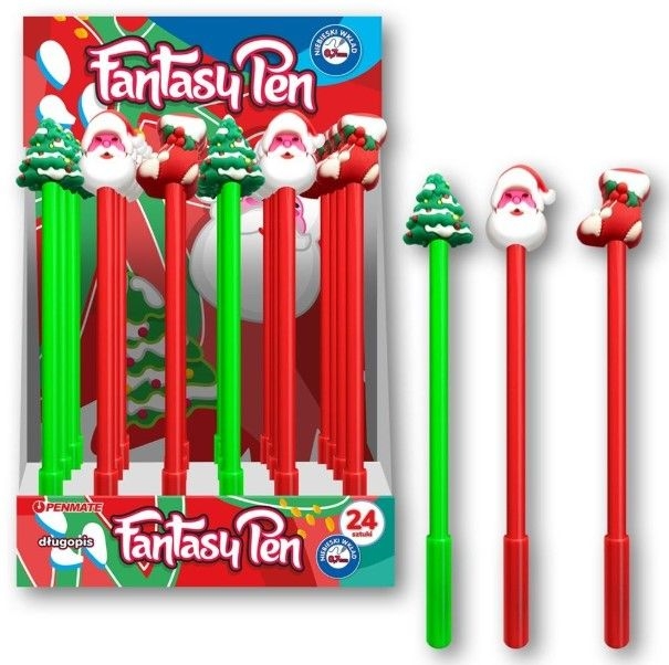 Długopisy Fantasy Pen Mikołaj to kolekcja, która wnosi świąteczną radość do każdego pisania! Wyjątkowy motyw: Choinka, Mikołaj lub Bute.